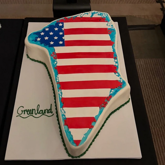 ABŞ-nin Respublikaçılar Partiyasının nümayəndələri üzərində ABŞ bayrağı olan Qrenlandiya formasında tort yeyiblər.