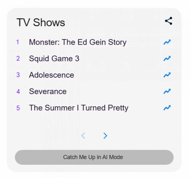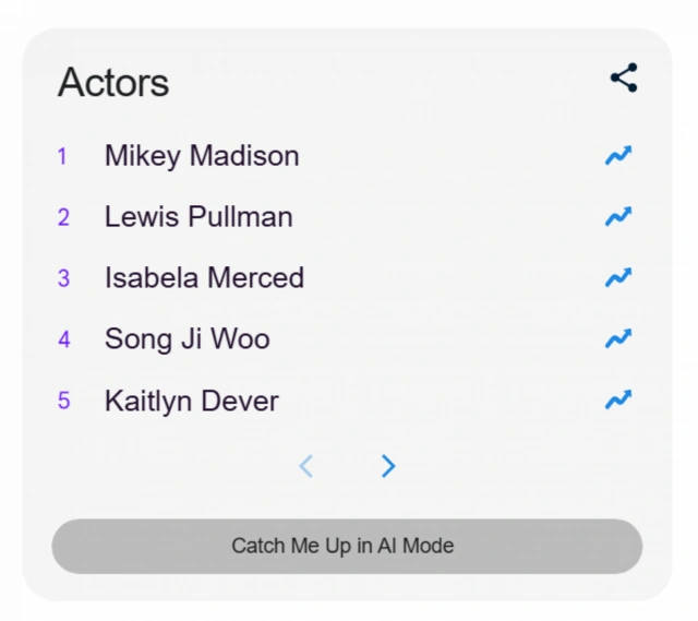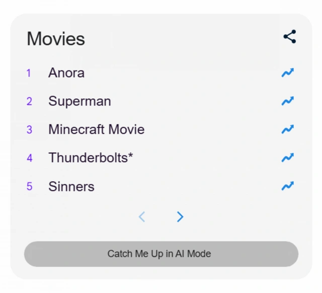 Filmlər arasında istifadəçilər ən çox "Anora" kinosunu axtarıblar. Aktyorlar və aktrisalar kateqoriyasında isə Mayki Medison daha çox maraq doğurub. Axtarış sistemində ən populyar serial "Bədheybətlər: Ed Qinin hekayəsi" olub.