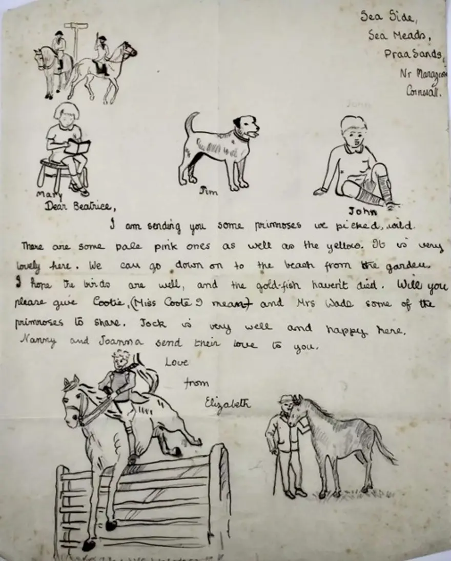 Bildirilir ki, şahzadə Elizabet məktubu 1936–1940-cı illərdə Kornuollda olduğu dövrdə, təxminən 10-12 yaşlarında yazıb.