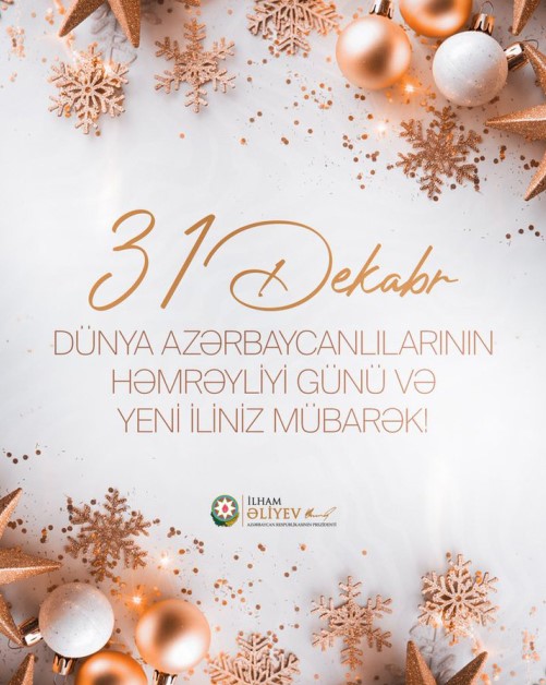 Azərbaycan Respublikasının Prezidenti İlham Əliyev 31 Dekabr - Dünya Azərbaycanlılarının Həmrəyliyi Günü və Yeni il bayramı ilə əlaqədar sosial media hesablarında paylaşım edib.