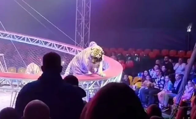 В городе Ростов-на-Дону в России во время циркового представления в результате обрушения защитной сетки тигр вышел из клетки и проник в зал с зрителями.