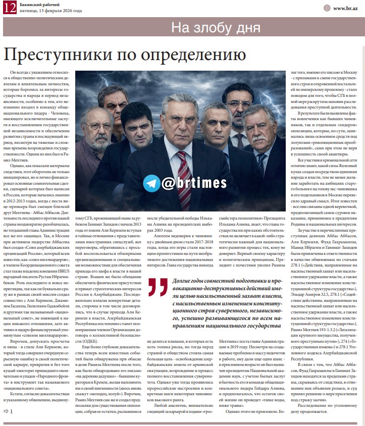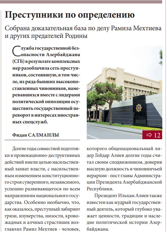 “Bakinski raboçi” qəzetinin 13 fevral sayında redaksiyanın şərhi DXT-nin rəsmi məlumatının girişinə əlavə olunub və material “Anadangəlmə cinayətkarlar. Ramiz Mehdiyevin və digər vətən xainlərinin işi üzrə dəlil-sübutlar toplanıb” (“Преступники по определению. Собрана доказательная база по делу Рамиза Мехтиева и других предателей Родины”) başlığı altında dərc edilib.