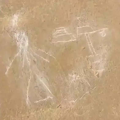 The footage shows the guide drawing human figures on the surface of the pyramid while explaining to tourists and then trying to erase them.