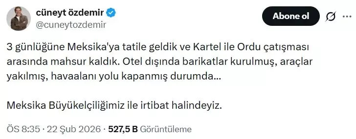 Турецкий журналист Джунейт Оздемир сообщил, что из-за вооруженного столкновения он остался в отеле во время отдыха в Мексике.
